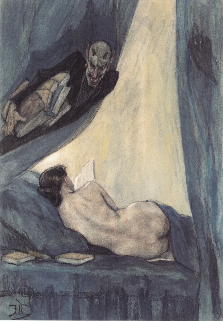 Cette aquarelle, peinte par Félicien Rops dans les années 1880, représente un bibliothécaire sous la forme d'un diable donnant aux femmes les moyens de se pervertir. Dans un contexte où l'on s'inquiétait de la lecture féminine, le livre est vécu comme subversif.