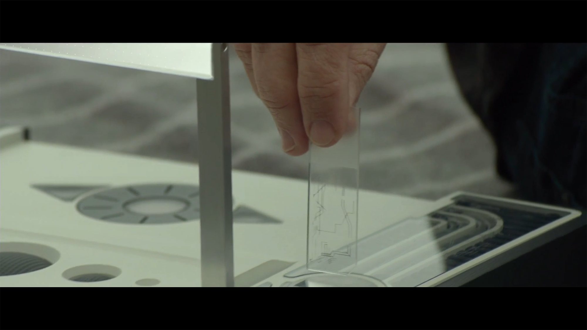 Mémoire conservée sur une plaquette de verre (Rememory, 1:35:52).